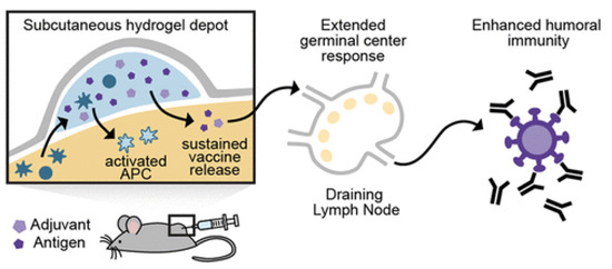 - Roth, G.A.; Gale, E.C.; Alcántara-Hernández, M.; Luo, W.; Axpe, E.; Verma, R.; Yin, Q.; Yu, A.C.; Lopez Hernandez, H.; Maikawa, C.L.; et al. Injectable Hydrogels for Sustained Codelivery of Subunit Vaccines Enhance Humoral Immunity. ACS Cent. Sci. 2020, 6, 1800–1812. [Google Scholar] [CrossRef]