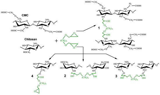 Scheme of interaction of chitosan and CMC with BDDGE.
