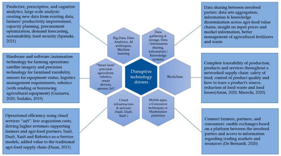 Relationship between disruptive technology drivers in the agricultural domain [81].