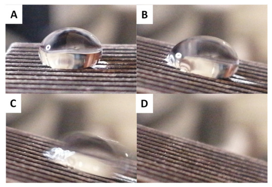 - Bormashenko, E.; Stein, T.; Pogreb, R.; Aurbach, D. “Petal Effect” on Surfaces Based on Lycopodium: High-Stick Surfaces Demonstrating High Apparent Contact Angles. J. Phys. Chem. C 2009, 113, 5568–5572. [Google Scholar] [CrossRef]