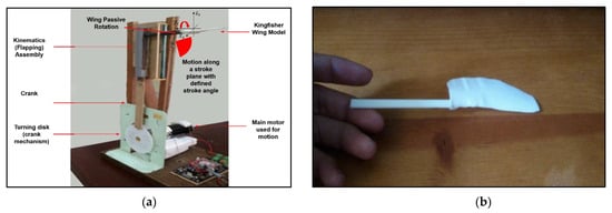 The demand for micro-aerial vehicles (MAVs) has grown at a rapid pace. Building an MAV presents its own set of challenges since its small size usually requires a short wingspan, which means that for flapping-wing MAVs, a single flapping period can only produce small lift and thrust force values. As a result, to maintain an effective flapping flight at a low Reynolds number, such as between (103) and (15 103), a particular MAV will have to take advantage of complex airflows through wake capture, one of several techniques. For even an ultra-small insect-based flapping, a deep understanding of unsteady aerodynamics is necessary. For example, mosquitoes have slightly different aerodynamic characteristics, such as less dependence on usual leading-edge vortices, trailing edge vortices through wake capture, dynamic stall, and rotational drag. This is accompanied by very high flapping frequency and low stroke amplitude []. Power sourcing and autonomous control are the biggest challenges. The Reynolds number at which effective flight is allowed decreases as wing length decreases, increasing the complexity of the flapping mechanism of such species. One of the preliminary studies performed by Park et al. [] shows how a biomimetic ornithopter can be designed efficiently to have a sustained and controlled flight. The majority of current research on bio-inspired robots looks at traits that are as similar to those of their natural counterparts. Researchers are also now looking into the impact of airframe reconfigurability on these flapping-wing MAVs, which have been tested successfully on traditional quad and hexacopters [] and also two of the most important characteristics of a bird flapping wing: downstroke and spanwise twisting. The former is concerned with the efficiency of the flapping operation, while the latter is concerned with reducing drag and power consumption [].