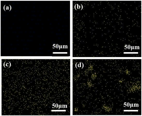 EDS images of Si of basalt fiber reinforced epoxy resin with different content of nano-silica: (a) 0 wt%; (b) 0.2 wt%; (c) 0.4 wt%; (d) 0.6 wt%.