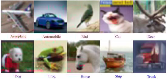 - Krizhevsky, A.; Hinton, G. Learning Multiple Layers of Features from Tiny Images; Technical Report; Citeseer: Princeton, NJ, USA, 2009. [Google Scholar]