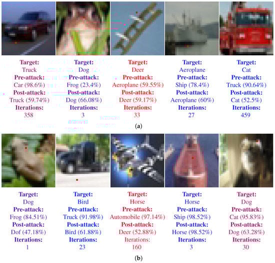 - Moosavi-Dezfooli, S.M.; Fawzi, A.; Frossard, P. Deepfool: A simple and accurate method to fool deep neural networks. In Proceedings of the IEEE Conference on Computer Vision and Pattern Recognition, Honolulu, HI, USA, 21–26 July 2016; pp. 2574–2582. [Google Scholar]