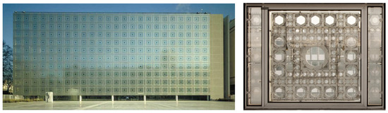 The first known example of the aesthetics of a building based on the dynamics of its façade is the Arab du Monde Institute, designed by Jean Nouvel in Paris in 1988 (Figure 1). The proposed façade was composed of a series of mechanical units able to react to the sunlight, closing themselves based on that stimulus being sensed.