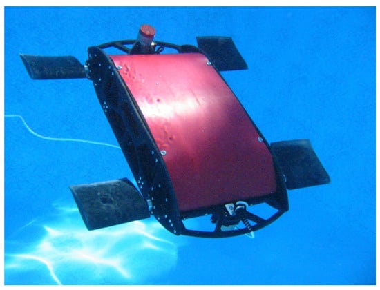 In the literature, few examples of fossil-inspired designs are available, predominantly in the field of robotics [,,,,] and flight technology [,,,,,]. One of the first examples is “Madeline”, a self-contained and self-propelled underwater vehicle with four independently controlled flippers, inspired by the evolutionary transformations of terrestrial to aquatic tetrapods [] (Figure 4). Based on the Madeline robot design, researchers investigated how two to four flippers interact to modulate swimming performance in a self-propelled swimmer. Their results demonstrated that four flippers produce superior surge behaviour entailing high costs, whereas two flippers serve well during cruising at half the cost [].