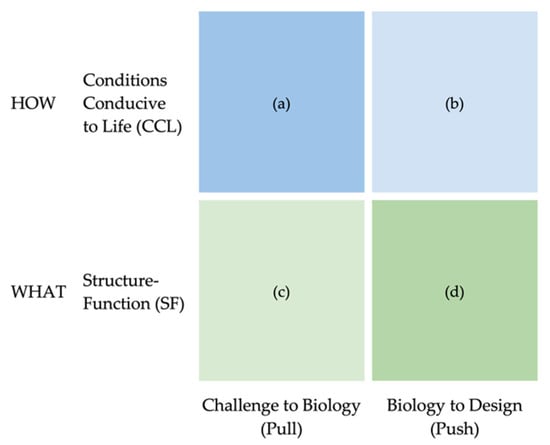 - Kennedy, E.B.; Niewiarowski, P.H. Biomimicry: Do frames of inquiry support search and identification of biological models? Designs 2018, 2, 27. [Google Scholar] [CrossRef] [Green Version]