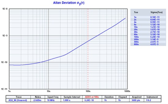 - Allan, D.W. Statistics of atomic frequency standards. Proc. IEEE 1966, 54, 221–230. [Google Scholar] [CrossRef]