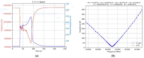 - Nakamoto, T.; Kobayashi, T. Development of circuit for measuring both Q variation and resonant frequency shift of quartz crystal microbalance. IEEE Trans. Ultrason. Ferroelectr. Freq. Control 1994, 41, 806–811. [Google Scholar] [CrossRef] [PubMed]