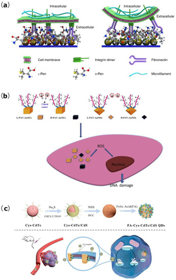 - Li, G.; Zhang, X.; Fei, X.; Li, J.; Liu, H.; Liu, W.; Yang, Y.; Li, B.; Liu, M.; Yang, G.; et al. Chiral FA Conjugated CdTe/CdS Quantum Dots for Selective Cancer Ablation. ACS Nano 2022, 16, 12991–13001. [Google Scholar] [CrossRef]