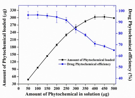 Initially, plant extract of Alternanthera sessilis and cupric chloride was used to synthesize CuONP (to eliminate the toxicity), which was later optimized to a size of 10 nm. Our formulation is entirely inspired by the prevailing Siddha medicine formulation in which they take pure copper along with the extract of other plants and synthesize the particles for around 32 days to eliminate its toxicity and achieve efficiency. However, here in our formulation methodology, we tried to reduce the synthesis time by opting for suitable technology and following the same flow for formulation. After the optimization of CuONP in a powdered concentration of 300 mg, it is placed in an oil bath. Parallelly 30 mL of another essential extract (i.e.) Nelumbo nucifera (leaf extract), Spharanthus indicus (Leaf extract), Azardica indica (flower extract), and Mangolia champaca (flower extract) were prepared. A time interval of 1 h 1.5 mL of the essential extract was added consecutively to the CuO particles placed in the oil bath, ensuring room temperature and rotation. After adding all the extract, the setup is left to formulate for 24 h. After the incubation of 24 h, the vial contents had filtered using a 0.22 μm cellulosic membrane filter, and obtained NHF was converted to powder form with the help of a hot air oven. Moreover, the entrapment efficiency (EE) of phytochemicals in NHF was calculated based on the following Equation (1)