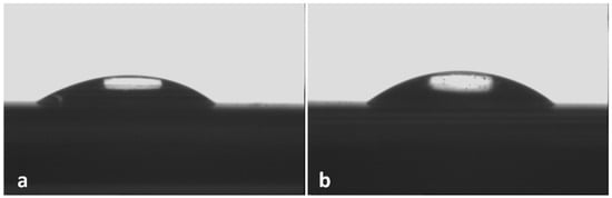 Contact angle snapshots of Cu(II)-MIP1 (a) and Cu(II)-MIP2 (b) nanoparticles.