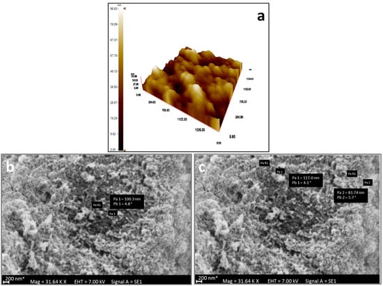 The surface structures of the Cu(II)-MIP1 and MIP2 nanoparticles and their average diameters were visualized with SEM. Figure 5a–c show the surface morphologies of Cu(II)-MIP1 and MIP2 nanoparticles, respectively. According to the SEM images, the average size of the Cu(II)-MIP nanoparticles varied between 80 nm and 120 nm. These results were consistent with the results from the AFM and Zeta size distribution measurements.