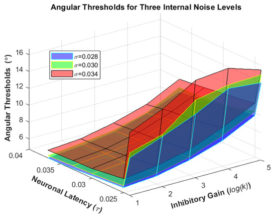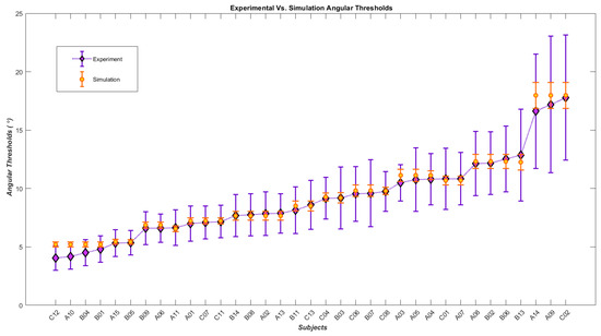 | Subjects | Angular Thresholds from Experiment | Angular Thresholds from Simulation | Slopes from Experiment | Slopes from Simulation | Inhibitory Gain | Time Constant | Noise |