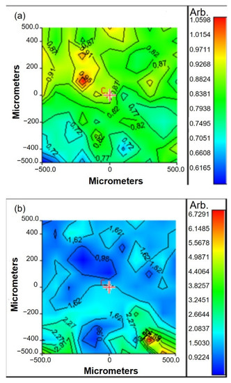 To test the chemical homogeneity of the samples, spectral images were acquired using an infrared imaging system in the 4000–600 cm−1 range. From the chemical map, the medium spectrum (which is the most representative spectrum) was recorded. Then, using the instrument software, the correlation map was elaborated as the correlation among the chemical map and the medium spectrum. A correlation index close to one on all the investigated samples indicated the chemical homogeneity of the sample.