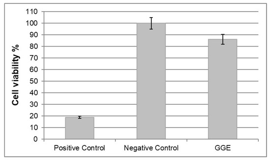 Reduction in cell viability by more than 50% with respect to negative control was considered a cytotoxic effect.