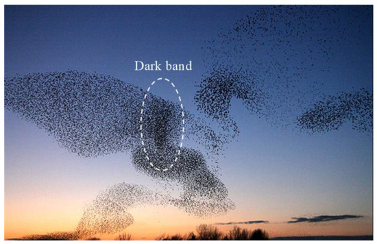 - Costanzo, A.; Hildenbrandt, H. Causes of variation of darkness in flocks of starlings, a computational model. Swarm Intell. 2022, 16, 91–105. [Google Scholar] [CrossRef]
