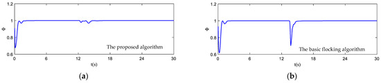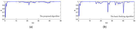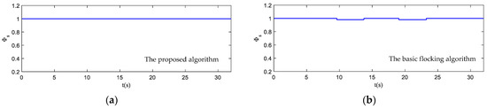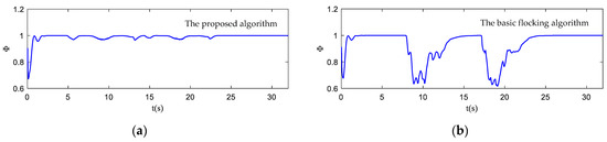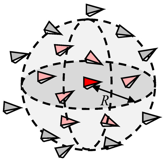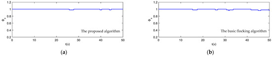 - Order parameter: it captures the coordination of the motion of the UAV swarm and represents the velocity alignment degree of all UAVs in the swarm.where varies from [0, 1]. indicates that the UAV swarm is in an ordered state while indicates that the UAV swarm is in a chaotic state.