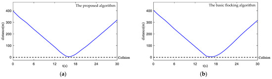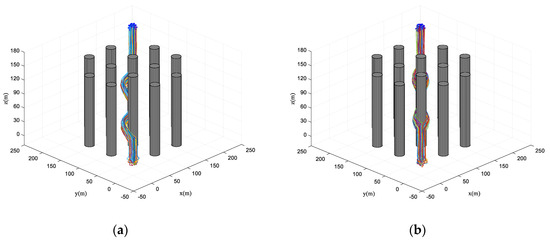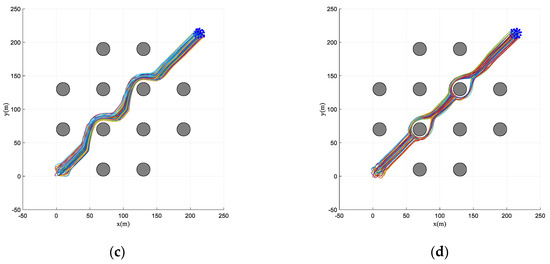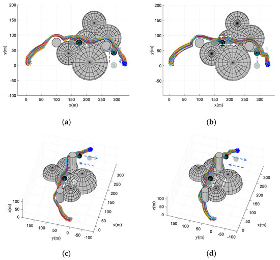 - Safety metrics: it measures the risk of collision between the UAV swarm and obstacles and assesses the ability of the UAV swarm to avoid collisions with the obstacles.where the number of UAV that enters the obstacle zone is . reveals that no UAVs enter the obstacle zone while reveals that the whole UAV swarm enters the obstacle zone.
