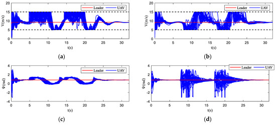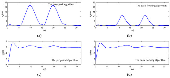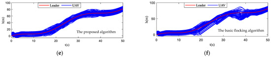 - Tracking error: it evaluates the tracking performance of the UAV swarm. The tracking error of position is error between the position of UAV swarm and virtual leader, which can be described as follows:The tracking error of altitude is error between the altitude of UAV swarm and virtual leader, which can be described as follows: