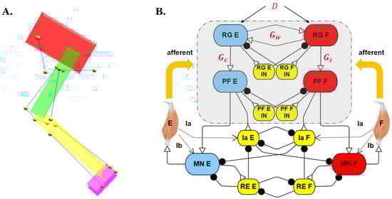 - Markin, S.N.; Klishko, A.N.; Shevtsova, N.A.; Lemay, M.A.; Prilutsky, B.I.; Rybak, I.A. A Neuromechanical Model of Spinal Control of Locomotion. In Neuromechanical Modeling of Posture and Locomotion; Prilutsky, B.I., Edwards, D.H., Eds.; Springer Series in Computational Neuroscience; Springer: New York, NY, USA, 2016; pp. 21–65. ISBN 978-1-4939-3267-2. [Google Scholar]
