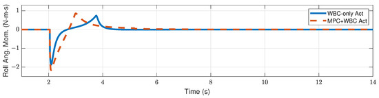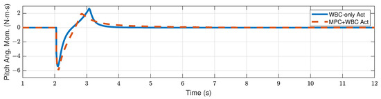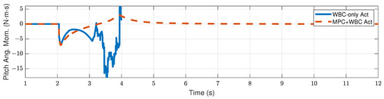 Figure 9 and Figure 10 show the robot’s centroidal pitch angular momentum. Although the rotational dynamics are not included in our TP-MPC, the simulation results show that our method is sufficient to deal with a certain degree of torque perturbation relative to the CoM.