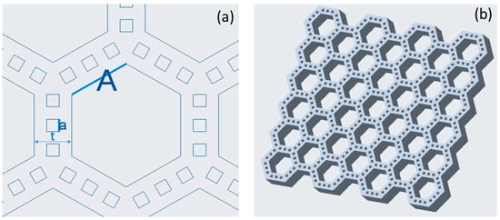 Bamboo is characterized by a functionally graded honeycomb structure with different honeycomb sizes, shapes, and wall thicknesses. Each hexagon is connected to its neighbors by a series of smaller square hollow structures (hereafter referred to as voids). As the hexagonal unit cells are hollow, the structure is much lighter than traditional solid hexagon structures. Remarkably, bamboo-like structures demonstrate four times higher shock absorption energy than traditional honeycomb structures [,]. The energy absorption capacity and crushing resistance of bamboo-inspired tubular honeycombs have been reported to correlate with the topology characteristics and structural hierarchy []. These exceptional attributes of bamboo have inspired the design of various bamboo-like structures. For example, a bamboo-inspired design approach was developed to fabricate mechanically flexible and electrically conductive carbon nanofiber/polydimethylsiloxane foam composites with unique hierarchical pore structures []. A simple and efficient two-step method has been invented to convert natural bamboo into a lightweight structural material exhibiting a superior strength and toughness due to its bamboo-like gradient laminated structure []. Statistical analysis and three-point bending tests of sandwich panels consisting of a bamboo core with different dimensions, packing geometry (cubic or hexagonal), and facing materials (aluminum or glass fiber-reinforced polymers) showed a dependence of the mechanical behavior on the shear strength and elastic modulus of the bamboo core and the flexural strength of the panels []. An appraisal of the mechanical properties and failure modes of laminated bamboo lumber has indicated that this material is a promising alternative to conventional building materials []. The foregoing studies suggest that many lightweight, bamboo-like structures with a wide range of hierarchical architectures and mechanical characteristics comparable with (or even superior to) those of counterpart engineering materials demonstrate a high potential to replace structural components in various industry sectors, such as construction, scaffolding, automotive, and aerospace. An important advantage of bamboo-inspired structures is that they are regular and repetitive; therefore, their design can be easily optimized and fabrication by 3D printing is facile. Furthermore, contrary to sandwich and fish-scale structures, the fabrication of bamboo structures does not require multiple composite materials.
