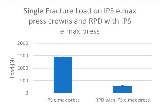 The mean fracture strength of IPS e.max Press crowns from the previous research [32] was significantly higher than that of RPD saddles with IPS e.max Press crowns in this study (p ≤ 0.05).