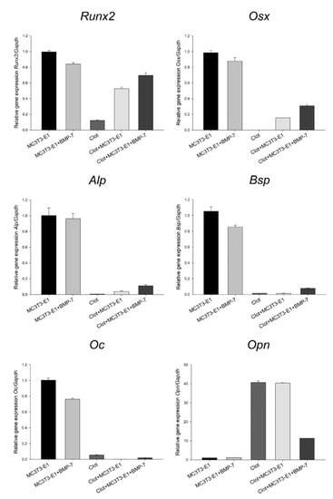 - Huang, W.; Carlsen, B.; Rudkin, G.; Berry, M.; Ishida, K.; Yamaguchi, D.T.; Miller, T.A. Osteopontin is a negative regulator of proliferation and differentiation in MC3T3-E1 pre-osteoblastic cells. Bone 2004, 34, 799–808. [Google Scholar] [CrossRef]