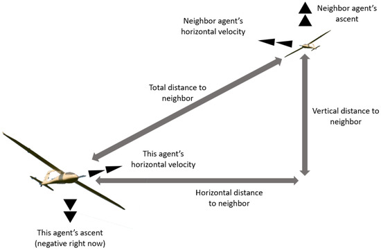 Additionally, it is assumed that agents can observe local agents’ relative positions and velocities. Similar to the way in which hawks watch for the ascent of other hawks to locate thermals, it is considered essential for agents to know other agents’ relative positions and velocities to determine whether they are relatively ascending or descending.