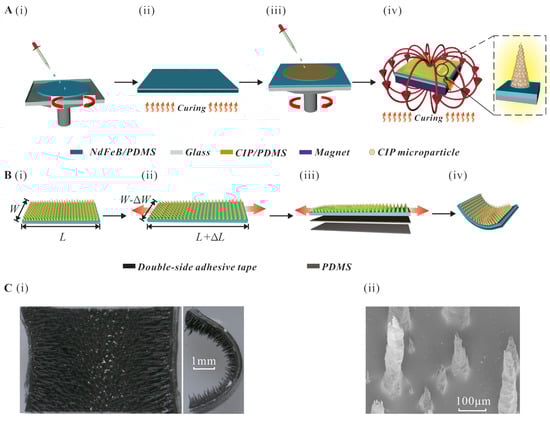 To this end, an easily-fabricated bionic magnetic inchworm robot composed of pre-strained MAE with micropillars is presented in this work. The pre-strained MAE is bonded with Polydimethylsiloxane (PDMS) substrate using double-sided tape, acting as a pre-load “muscle” to recover the arched shape when no magnetic field is applied. The pre-load muscle contracts the magnetic inchworm robot body to make the posterior section move forward when the anterior leg is fixed with micropillars by magnetic force. The magnetic micropillars are adopted as tiny legs to anchor the surface, like the biological inchworm gripping the ground surface. In this way, magnetization is not necessary for actuation, which simplifies the manufacturing process.