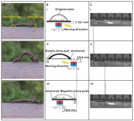 Figure 5. The experimental results indicate that the proposed magnetic inchworm robots can successfully imitate the movement mechanism of biological inchworms with the anchoring pull-and-push strategy.