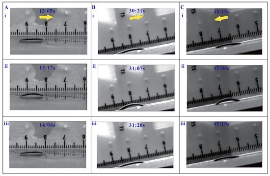 Figure 4. In addition, the test results of the three magnetic inchworm robots with the same micropillars of 400 µm are depicted in