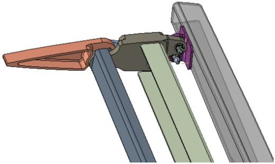 Both the spars and ribs of the winglet structural torsion box are made of carbon fiber laminate; instead, movables are made of aluminum alloy due to the tight tolerances therein requested. Actuation is accomplished by two electromechanical actuators of adequate size, weight, and power, that are housed inside the CFRP structure. Each mechanical system has two separate hinge lines enabling the camber morphing of the two devices through individual mechanisms, fitted within the confined space of the winglet loft-line. Both actuators dimensions and morphing mechanisms were optimized to achieve the best compromise between motion amplification and load capacity. Figure 6 shows the finger-like mechanism developed for the upper morphing tab. Each tab is a single-degree-of-freedom kinematic system where the rigid blocks rotate according to a specific gear ratio, depending on hinge and linking rods position.