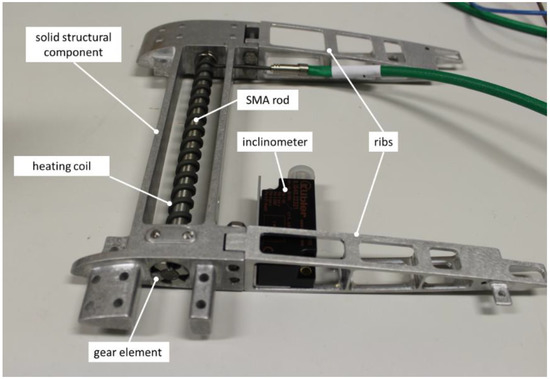 - Calkins, F.T.; Mabe, J.H. Flight test of a shape memory alloy actuated adaptive trailing edge flap. In Proceedings of the ASME 2016 Conference on Smart Materials, Adaptive Structures and Intelligent Systems, Stowe, VT, USA, 28–30 September 2016. Paper No: SMASIS2016-9141. [Google Scholar]