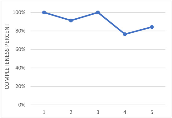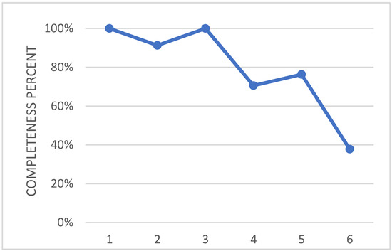 The wing flap camber morphing was developed within the Airgreen 2 project, and was therein tested during an extensive experimental campaign in a relevant environment, [31]. In the future, the prototype will be tested on a surrogate platform of the target system. Therefore, the current TRA may be preliminarily assessed to be 5. In Figure 13, the effort that has been spent so far is shown in terms of number of fulfilled requirements for each level of the used tool. As anticipated in the paragraphs above, such analysis relies on the engineering experience and sensibility of the designer; nevertheless, the process is documented and ready for further reviews. This approach is applied for all the other evaluations, and is further presented in the paper.