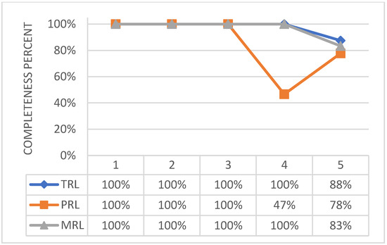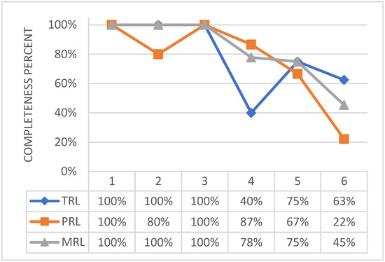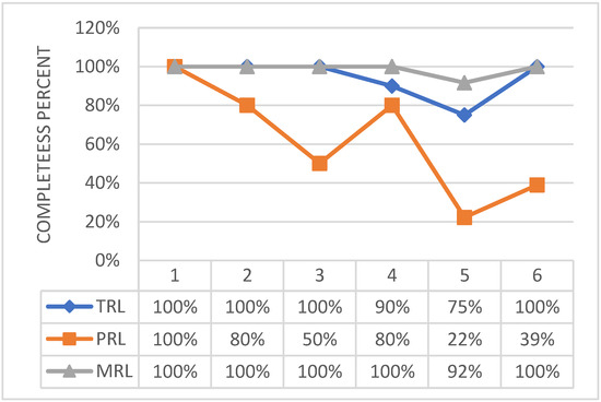 To address this specific study, it was necessary to establish a common, and possibly, widespread method to have a measure of the achieved TRL (Technology Readiness Level), [19,20,21,22,23]. The methodology proposed by the AFRL was then selected, i.e., the Technology Readiness Calculator, as it seemed comprehensive enough to give a full overview of the attainments and the possible leaks of a general system. Furthermore, the links with NASA gave the confidence that the approach can be potentially shared and discussed among a wide user community, [24,25]. Although this tool is widely considered as a consolidated method to provide a snapshot of technology maturity at a certain time, it should be also considered that the related outcomes may not necessarily fit the macroscopic expectations. In fact, significant variability in the TRL assessment of the single subsystems may occur, for instance depending on the maturity of the application environment at hand, which is in turn due to a subjective understanding of the complex pathway enabling technology maturation.