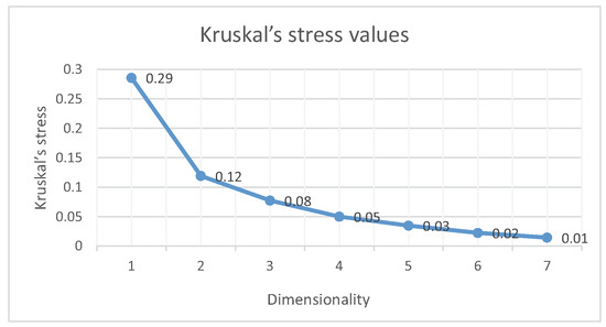 Kruskal stress values vary with the dimensionality of the MDS solution.