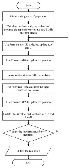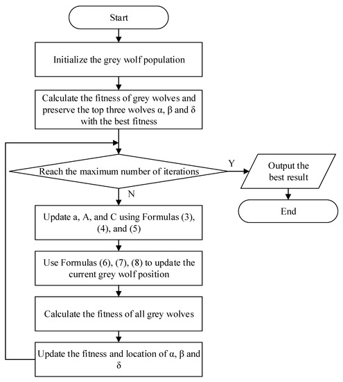 According to the description above, the algorithm flow chart of GWO is shown in Figure 1.