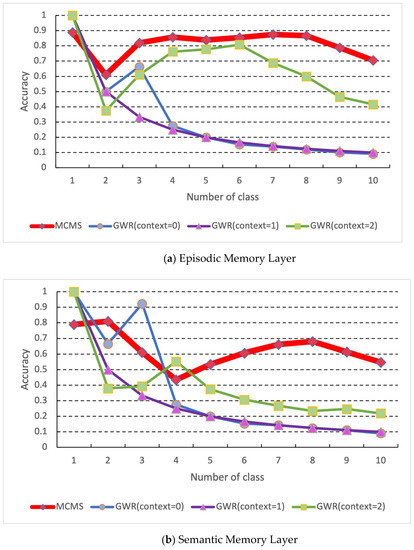 Comparison results of each layer of the proposed MCMS and GWR: (a) episodic memory layer; (b) semantic memory layer.