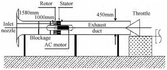 The research object of this paper is a low-speed axial compressor, which is shown in the Figure 1. It consists of 19 rotor blades and 13 stator blades in a single stage at the design speed of 3000 rpm. In the process of experiment, the volume flow at the design point is 2.4 m3/s, with a total pressure rise of 1500 Pa. The relevant geometric parameters of the compressor are presented in Table 1 for a brief synopsis. An introduction on the test rig is described in the references [15].