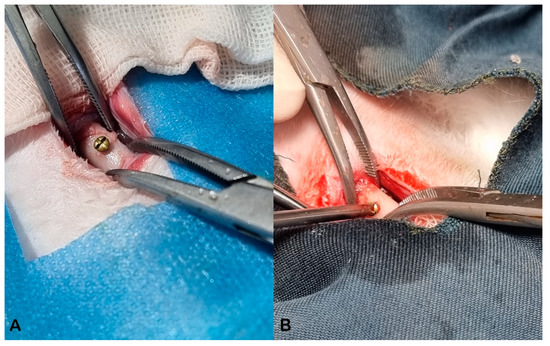 (A,B): insertion of the screw in rabbit femur. It was made sure that all screws were inserted unicortically with a proper primary stability.