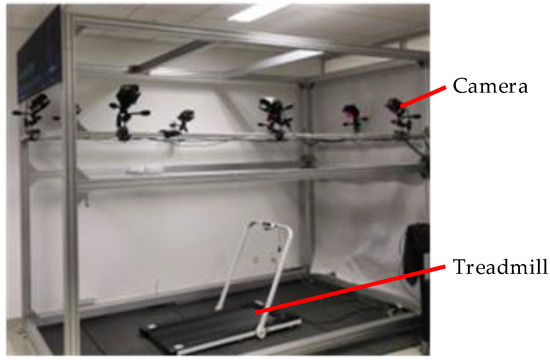 Motion capture technology is a powerful tool for capturing the real-time movement of human bodies [25,26]. In this study, we utilized the NOKOV three-dimensional optical motion capture system (Nokov Science & Technology Co. Ltd., Beijing, China), which included eight cameras, multiple markers, and a master computer, as shown in Figure 4. The markers were coated with a reflective material that reflected the light generated by the cameras, allowing the motion capture system to collect data on moving objects’ displacement, velocity, and acceleration.