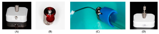 A total of 60 implants were used. Each of the implants was attached to the plastic base provided with the implants from the manufacturer (Figure 1A). The abutment connections were contaminated with blood (Figure 1B) donated by one of the authors after he/she signed an informed consent form. Blood was collected intravenously (approximately 2 mL) and the implants were contaminated before the coagulation time with a pipette until the blood filled the inner surface of the implant fixture to replicate the oral environment. After contamination with blood, the implant connections were closed with cover screws and then disinfected using CaviCide spray (Metrex Research, Romulus, MI, USA) (Figure 1C) as a standard protocol for all the implants. Each implant was then placed in a plastic box for seven days in a humid incubator (Figure 1D). The implants were divided into 3 groups (20 implants per group). The cover screws were then removed and the implant abutment connection was decontaminated using different protocols (except for the Control Group). The 3 study groups were as follows: