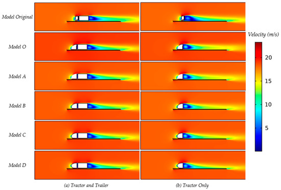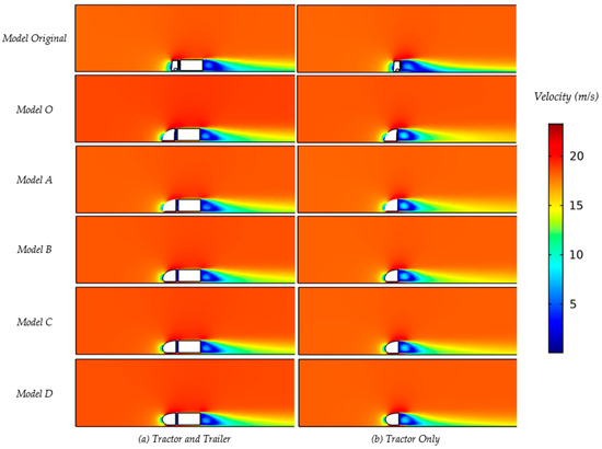 Table A4 (below) shows a comparison of the drag coefficients for the Model A truck model simulated with the k-ε and k-ω methods, respectively. These results have a maximum difference of 4.8% and 3.8%, which indicates small differences. We nevertheless used the k-ε methods, being better qualified for drag force estimations [40,41,43,44,49].