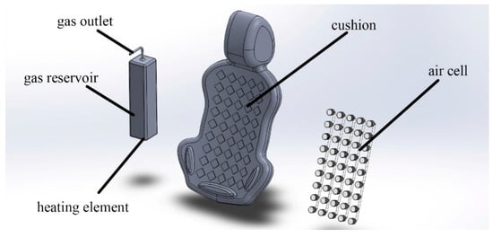 The air cell system is designed based on ref. [34] to push the back of the occupant to a position that satisfies the primary goal of the research, which is based on instantaneous contact area reduction. The reduction will be performed instantaneously to prevent any adverse effect on the pressure distribution (see Figure 4).