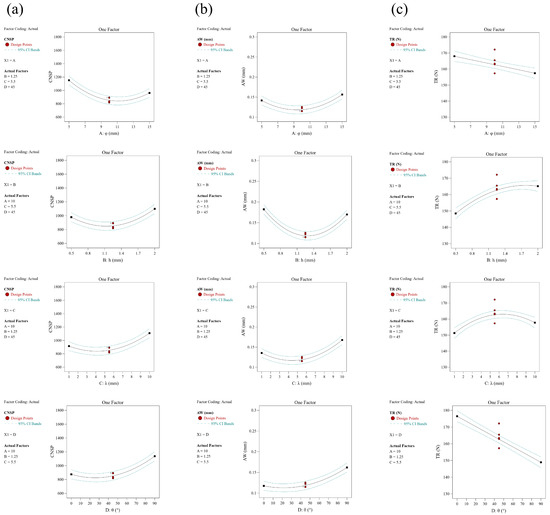 | Φ (mm) | h (mm) | λ (mm) | θ (°) | AW (mm) | CNSP | TR (N) | Desirability (%) |
