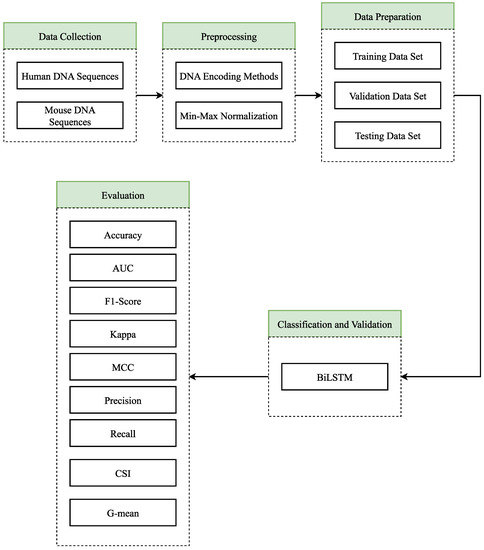 - Cheng, X.; Wang, J.; Li, Q.; Liu, T. BiLSTM-5mC: A bidirectional long short-term memory-based approach for predicting 5-methylcytosine sites in genome-wide DNA promoters. Molecules 2021, 26, 7414. [Google Scholar] [CrossRef]
