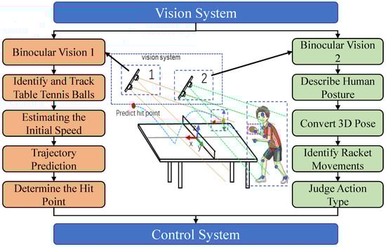 By predicting the opponent’s hitting behavior and trajectory, we can simulate the flight path and the rotation direction of the ball. The overall working diagram for the visual module is depicted in Figure 4.
