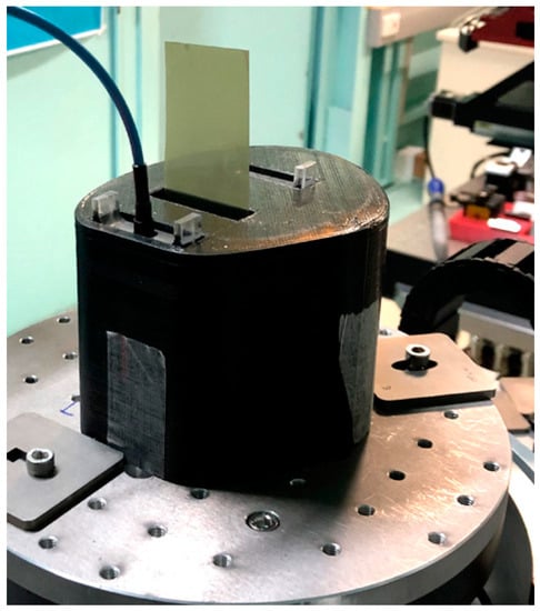 Furthermore, the phantom is equipped with different inserts which allow for precise measurement of radiation dose. These inserts can accommodate radiochromic film and dosimeters used in clinical radiotherapy (ion chambers or microDiamond probes) at three different positions to monitor the radiation exposure of the phantom. They also allow insertion of tubes filled with biological samples in the same position as the microDiamond probes. The custom-made inserts are crafted from sheets of Polymethyl Methacrylate (PMMA), commonly known as acrylic (physical density ) with a 7 mm hole to accommodate either a PTW microDiamond detector (TM 60019, PTW, Freiburg, Germany) or vials for cell samples (NMR glass tube (TeachSpin, Buffalo, NY, USA).